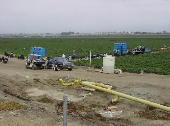 The Salinas Valley growers, shown harvesting crops, benefit from the irrigation facility that distributes reclaimed water at Castroville. Perry managed this 48 mile pipeline & pumping project for the Monterey County Water Resources Agency. |